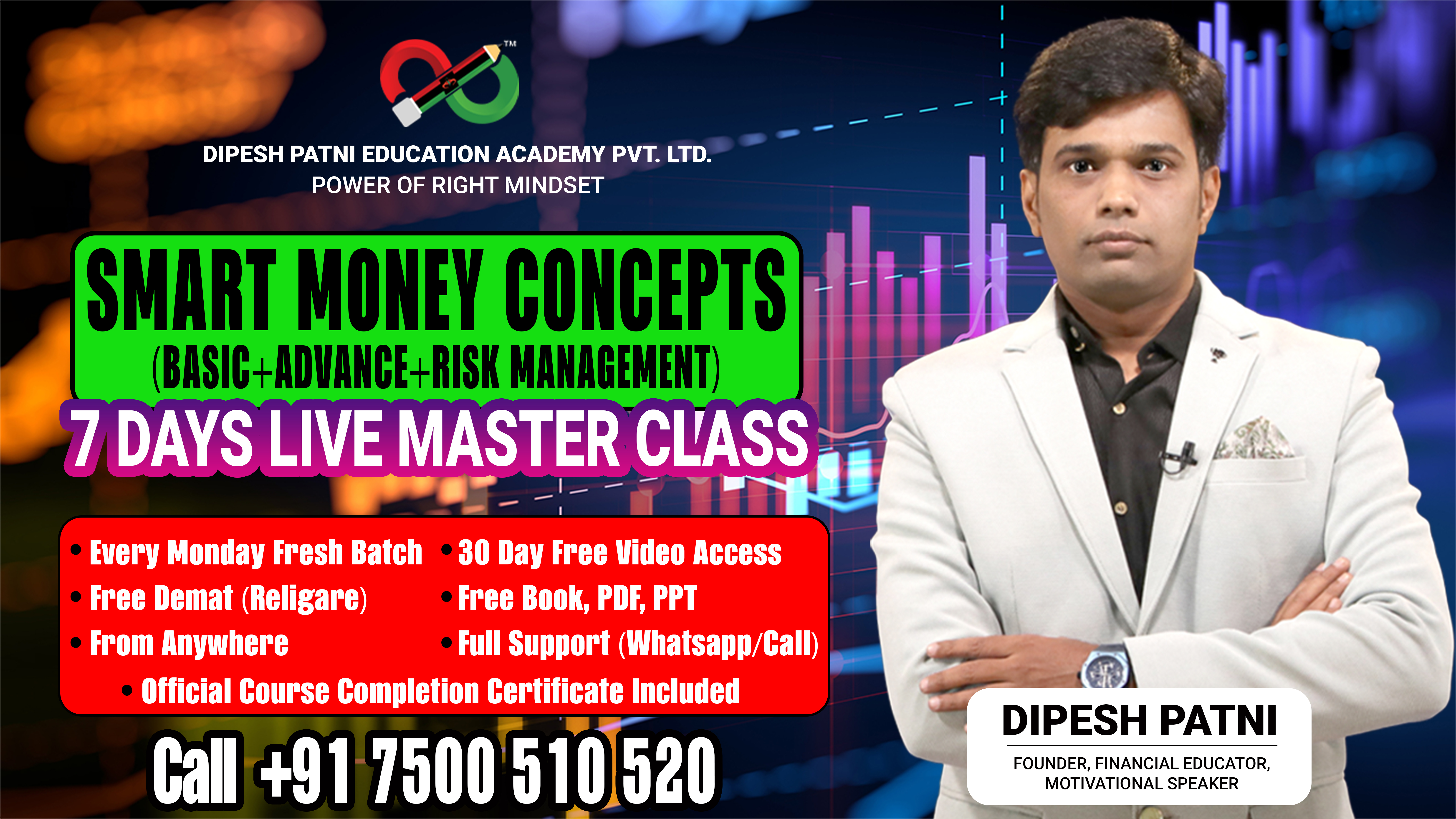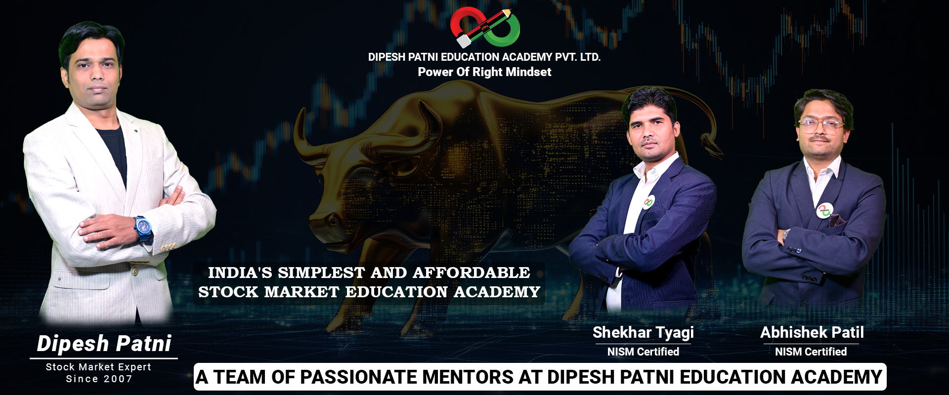 At Dipesh Patni Education Academy, our mission is to create a community of informed and skilled individuals who can make smart, independent financial decisions. Join us and embrace a new way to learn, grow and succeed in the stock market.