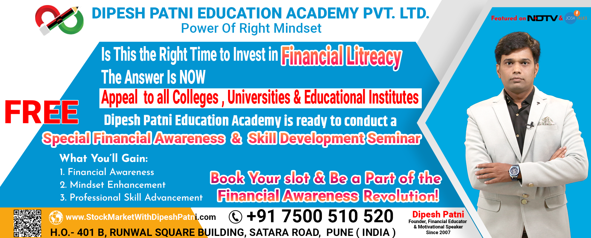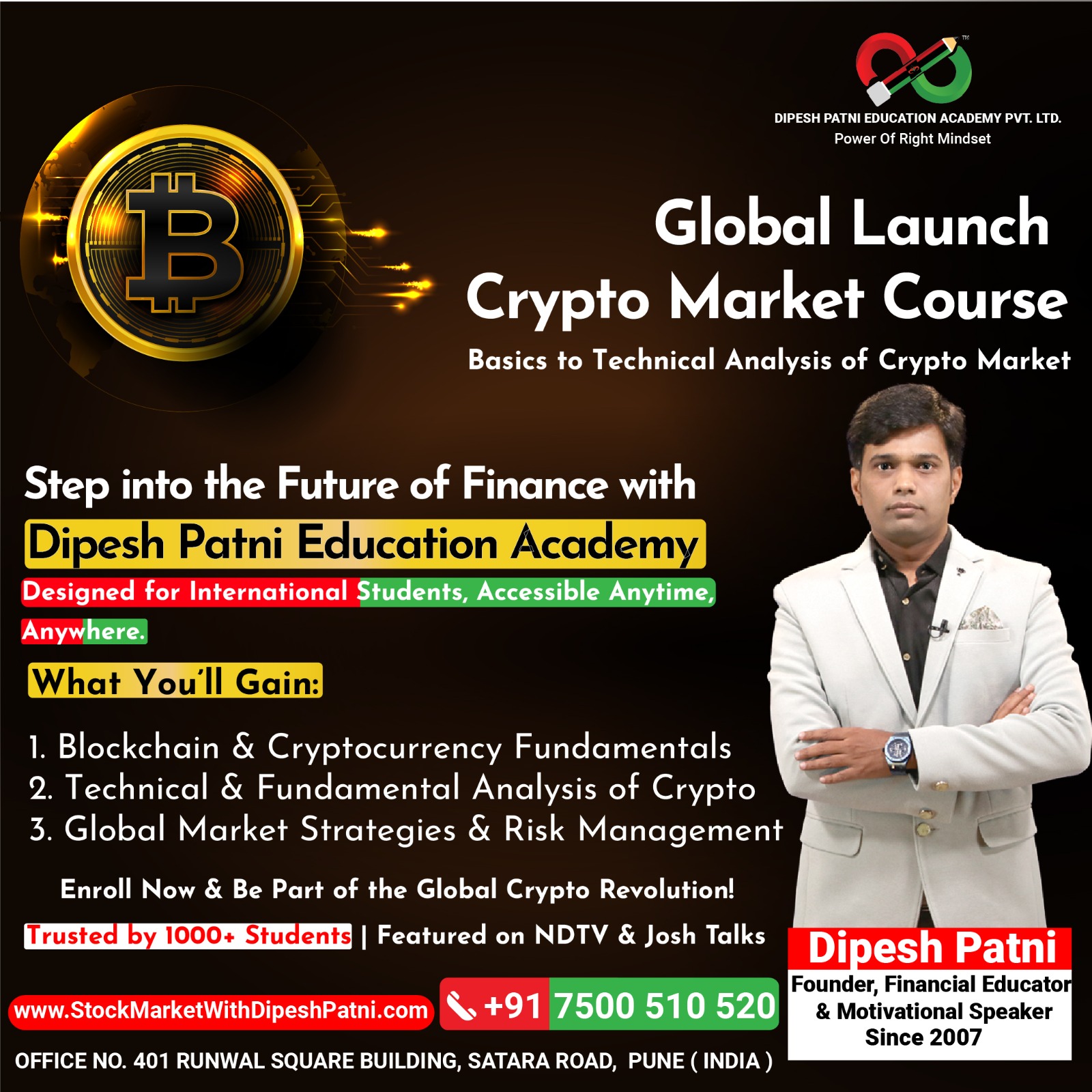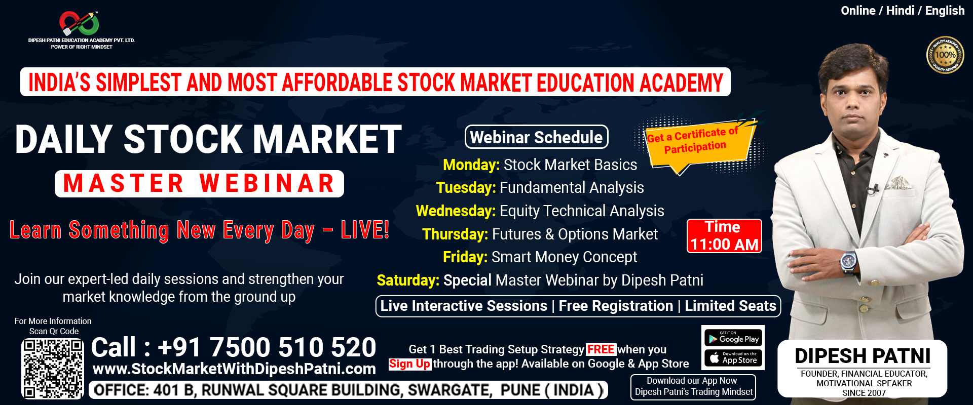At Dipesh Patni Education Academy, we are proud to be backed by strong, experienced education partners who share our mission of spreading financial literacy across India.